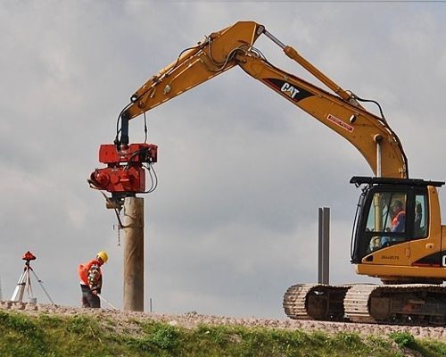 Cette méthode implique l'utilisation de vibreurs vibrants. De telles installations à travers le casque transmettent des vibrations mécaniques d'une certaine fréquence au tas. En raison de cet effet, le sol devient flottant et le tas commence à couler sous l'influence de son propre poids. Si nous parlons de longs pieux lourds, utilisez des basses fréquences, pour des petits pieux légers, des fréquences plus élevées conviennent mieux (plus de 1500 vibrations par minute).