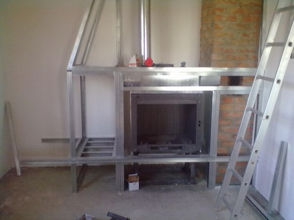 - un cadre est créé à partir du profil métallique autour du périmètre de la cheminée; des boulons d'ancrage sont utilisés pour la fixation. Les profils sont reliés par des vis autotaraudeuses. L'étape entre le profil doit correspondre au format du carreau de porcelaine;