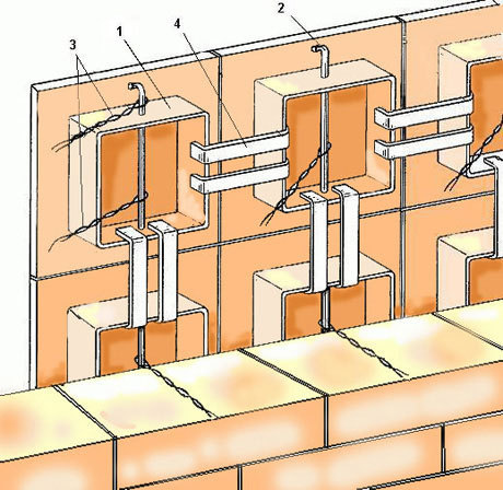 - Au milieu de la béquille, un fil souple et souple est attaché, qui sera ensuite intégré dans la maçonnerie;