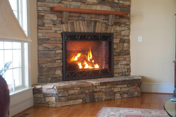 Technologie de pose de pierre ressemble à l'installation de tuiles décrite ci-dessus. Entre les pierres, il n'est pas nécessaire de laisser des espaces de même taille (comme c'est le cas avec les carreaux), pour que tout soit encore plus simple. Pour l'installation, ils prennent un adhésif spécial résistant à la chaleur pour la pierre. Il est recommandé de fixer les pierres les plus lourdes avec des ancrages. Sinon, tout est identique à celui des tuiles. Tout d'abord, la surface est préparée, apprêtée, la colle est diluée, puis l'installation de la pierre commence à partir de la rangée inférieure. Avant de commencer les travaux, il est recommandé de faire fondre le foyer, et de poser la pierre au sol afin de monter le futur "dessin". Dans le cas de la pierre naturelle, les éléments peuvent avoir une teinte légèrement différente. Cela doit être considéré à l'avance. Semble mieux lorsque les rangées inférieures sont légèrement plus foncées que le haut. Si vous le souhaitez, la pierre est recouverte d'un vernis résistant à la chaleur.