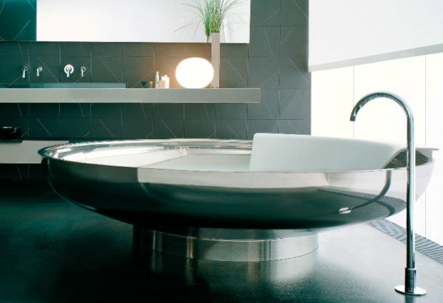 Baignoires en acier inoxydable toujours un gadget. Ils sont beaux et assez inhabituels, deviendront une décoration de la salle de bain dans un style modernemais ils coûtent cher. Un autre inconvénient est calcaire, ce qui peut rapidement gâcher l'apparence d'un tel bain. Préparez-vous à essuyer les murs avec un chiffon sec à chaque fois.