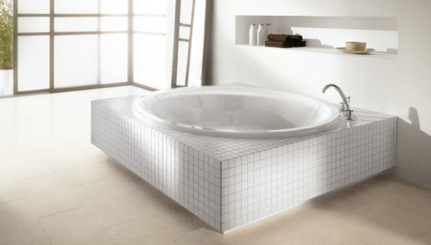 - bains ronds avoir l'air impressionnant et attirer immédiatement l'attention.Ces produits sont souvent mis sur le podium, ou, au contraire, approfondis, obtenant un semblant de piscine. Naturellement, cette option est plus appropriée pour une maison privée - dans les appartements typiques avec le nombre minimum requis de mètres carrés, une telle baignoire ne conviendra pas;
