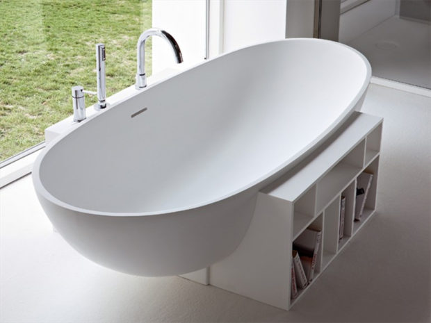 - durabilité et résistance aux rayures. Cela fait tellement défaut dans les bains acryliques, mais grâce à l'introduction du quartz, un miracle a été créé. En raison du fait que les parois du produit sont épaisses et rigides il n'est pas nécessaire d'utiliser un cadre de renforcement supplémentairecomme c'est le cas avec l'analogue acrylique.Kvar gère indépendamment les charges d'eau et une personne qui se baigne. Cela simplifie non seulement l'installation, mais délie également les mains en termes de placement de la cuvette et d'organisation de l'intérieur de la salle de bain;