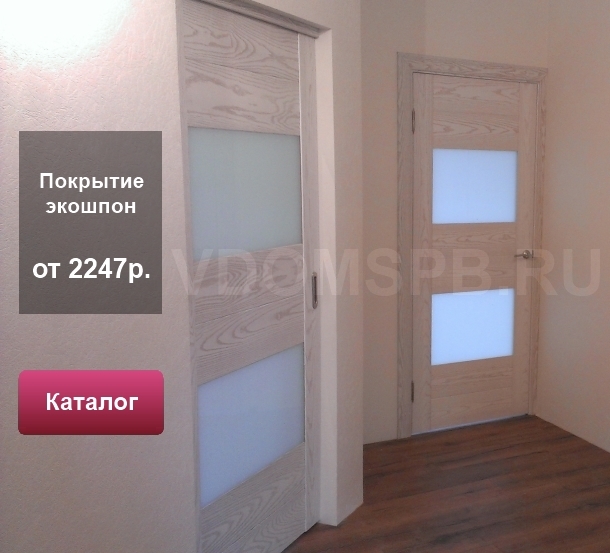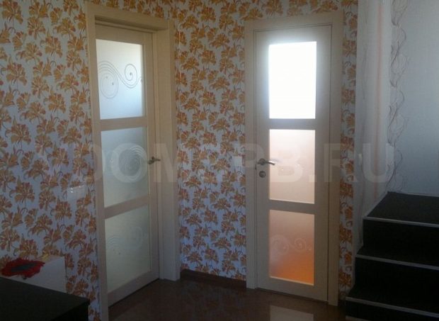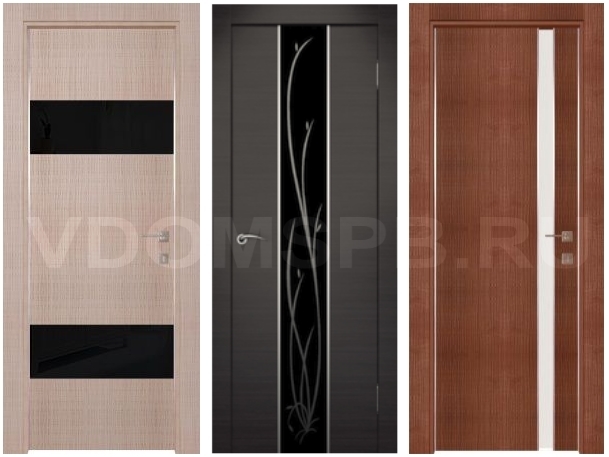 Tous les modèles suivants ont déjà une signification artistique plus large. Les portes en placage écologique utilisent souvent du verre et différentes méthodes d'installation sont utilisées. Ressemble à un beau verre, encastré. Cela signifie que la surface en verre et les panneaux latéraux en MDF sont au même niveau.