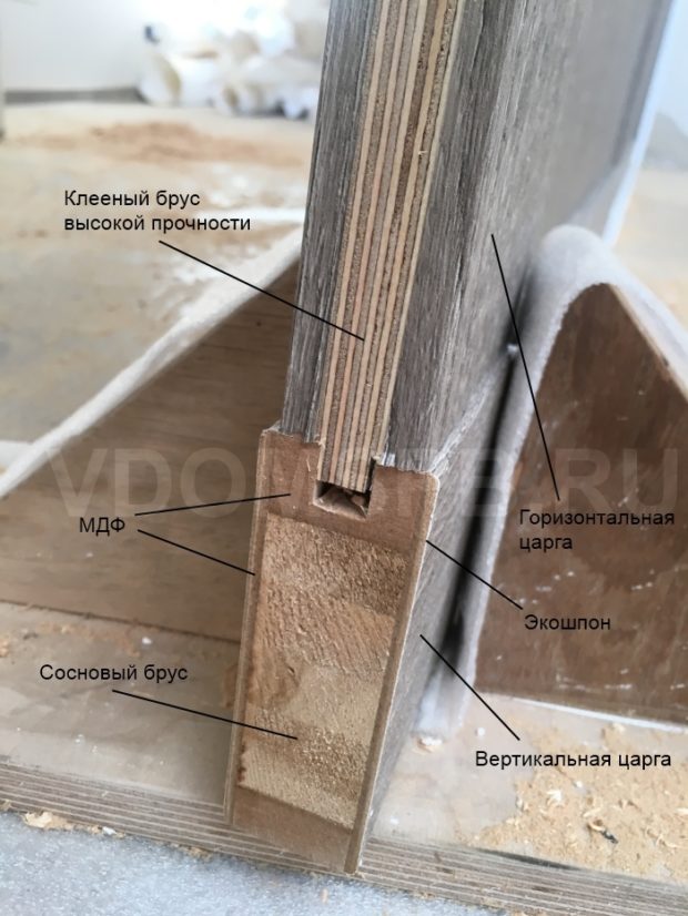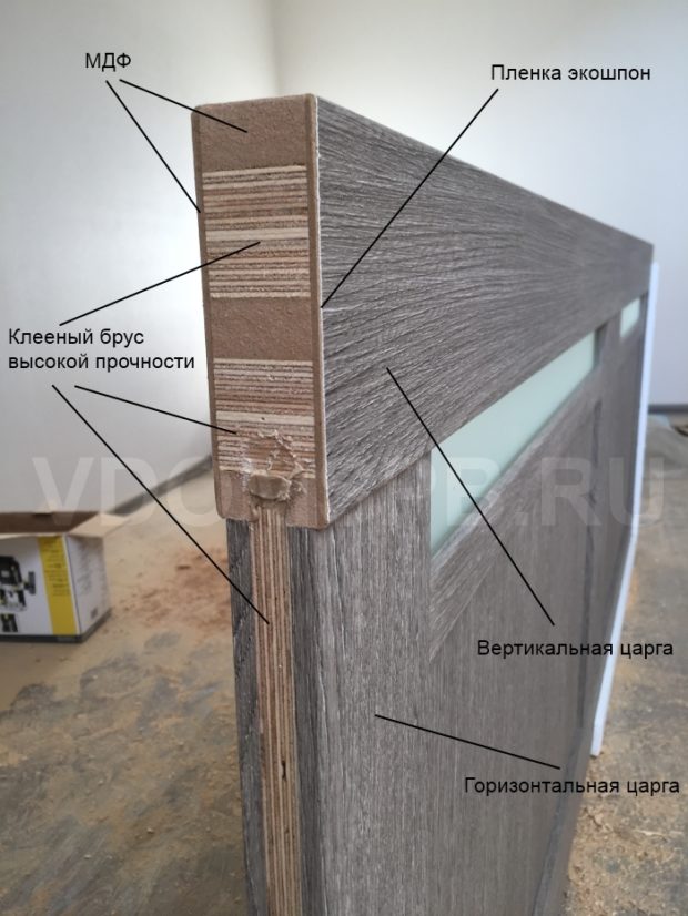 - Cadre - dans les plus naturels, il est plus durable, composé d'un ensemble de conifères. Une telle porte est plus lourde, plus solide, plus fiable. Au placage écologique, tout est fait selon l'option économique, ce qui signifie que dans les produits les moins chers, le remplissage cellulaire des vides et les panneaux de particules bon marché sont autorisés;