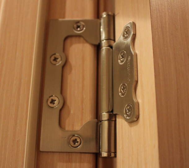 Les charnières les moins chères ne plantent pas, mais se vissent simplement sur la surface. Le soi-disant Papillons ils peuvent convenir à des portes éco-plaquées légères et bon marché, mais ils ne sont pas fiables, car ils n'offrent pas de stabilité et de rigidité au battant de porte en raison de l'installation. Peut-être que les seuls qui gagnent en choisissant de telles boucles sont les installateurs: ils sont accrochés vis, et passer sur l'ensemble de l'opération pas plus d'une demi-heure.