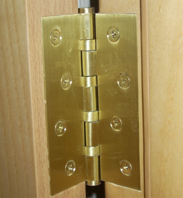 Au deuxième niveau de coût, les factures (carte) boucles. Fabriqué en laiton et acier. Une moitié est attachée à la boîte et la seconde à la toile. C'est une option acceptable. Son inconvénient est que les charnières sont bien fixées, et si vous devez retirer la porte, vous devez désactiver les vis, ce qui n'est pas toujours pratique.