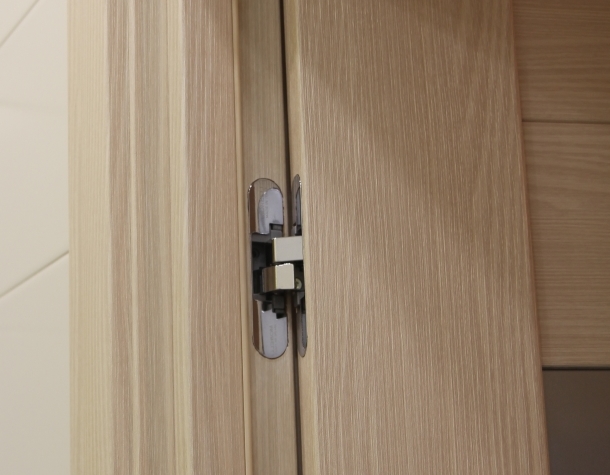 La quatrième option est boucles cachées et, en conséquence, l'installation cachée de la porte. L'apparition d'un tel modèle donne l'impression que la toile est une continuation du mur. A l'extérieur, ni les charnières ni le caisson ne sont visibles, et les plateaux sont totalement absents. Les charnières cachées sont rarement utilisées lorsqu'elles sont associées à une porte en placage écologique. Ces mécanismes coûtent environ 1 200 roubles. Une augmentation du prix d'un modèle de 30 à 50% est contraire à la tâche elle-même, et elle consiste à acheter une porte bon marché avec l'apparence d'un produit d'élite.