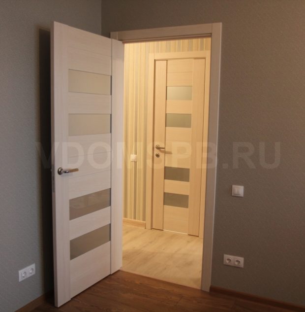 Une telle porte peut être achetée dans toutes les options énumérées précédemment - sourde, avec modling, verre. Convient pour les intérieurs classiques modernes, minimalisme, moderne.