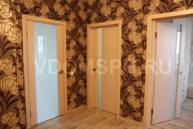 - Sur les couleurs de la pièce: généralement les portes sont choisies sous le plancher, les plinthes, les meubles, les accessoires. Comme il n'y a pas d'éléments décoratifs dans notre version, recherchez une correspondance de couleur et de texture;