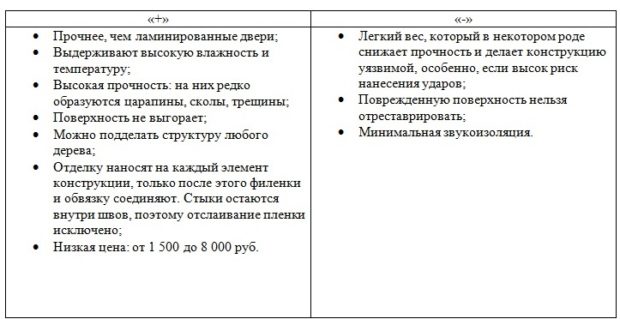 Le seul inconvénient des portes en PVC - le film avec une exposition constante à un puissant rayonnement ultraviolet peut brûler, et dans une chaleur extrême émet une odeur chimique désagréable. Mais il vous suffit de choisir le bon emplacement d'installation, et deux modèles associés ont des caractéristiques égalisées.