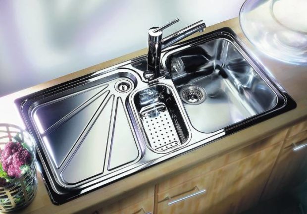 - durabilité. Un évier en acier inoxydable avec un soin minimal durera des décennies, sans se gâter des effets de la lumière du soleil, de la chaleur et des chocs;