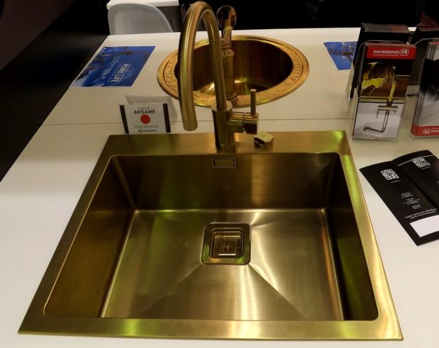 - une petite variété de couleurs. La plupart des produits reçoivent une surface de couleur métallique. Il existe un petit nombre d'éviers plus chers qui peuvent répéter la couleur du bronze ou de l'or. D'une part, la surface en acier est universelle et s'adaptera à n'importe quel intérieur, mais si vous avez quelque chose de spécial à l'esprit, ce sera difficile. Éviers de pierre artificielle gagner à cet égard. Soit dit en passant, ils ne sont pas du tout bruyants, vous pouvez donc envisager cette option pour l'achat.