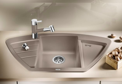 - éviers d'angle souvent faite sous la forme d'un segment ou d'un trapèze. Ils vous permettent d'utiliser efficacement l'espace de la cuisine, car souvent le potentiel des coins n'est pas révélé comme il se doit;