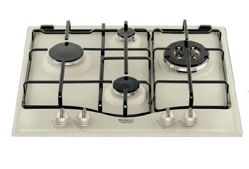 - "Du gaz sur le verre." La table de cuisson avec plaques à gaz est cachée sous une couche de vitrocéramique ou de verre trempé. La première option est préférable, car la vitrocéramique conduit mieux la chaleur, mais ce paramètre n'est pas si important, car le brûleur à gaz chauffe la surface si rapidement. Le verre trempé vous coûtera moins cher, mais vous devrez le manipuler un peu plus soigneusement qu'avec la vitrocéramique, car il est relativement facile à rayer.