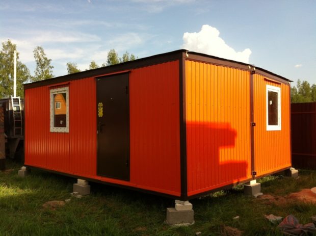 Les maisons de changement de pays sont faites à partir de divers matériaux et dans différentes tailles, peuvent avoir partitions internes ou s'en passer. Il s'agit de bâtiments mobiles fabriqués en usine, puis transportés sur le site pour une installation ultérieure. Si vous le souhaitez, à la fin de la construction, le vestiaire peut facilement être retiré du site, déplacé ou même vendu. Il est très raisonnable d'aménager immédiatement la structure de sorte qu'elle devienne à l'avenir un bâtiment temporaire auxiliaire en un élément important d'un chalet d'été.