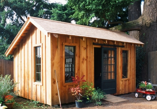N'oubliez pas que lorsque la cabine passe d'un lieu de séjour temporaire et de stockage d'outils à un élément architectural intégral du site, elle peut être anoblie de l'extérieur et de l'intérieur pour s'intégrer dans aménagement paysager et était une décoration du territoire.