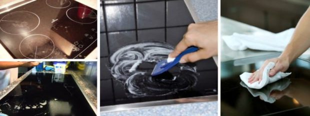 Bien sûr, vous pouvez toujours utiliser des produits chimiques ménagers. L'essentiel est de ne pas prendre de substances abrasives et de toujours porter des gants. Vous pouvez faire confiance aux produits Fairy, Gala, AOS, ainsi qu'aux outils que les fabricants de surfaces de cuisson produisent eux-mêmes. Les remèdes populaires apportent leur toxicité plus faible, leur prix bas et leur prix abordable (la plupart des composants sont toujours à la maison), et en termes d'efficacité, ils ne sont souvent pas inférieurs aux produits chimiques ménagers.