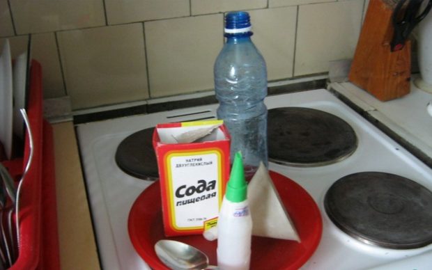 Cet outil, familier à de nombreux enfants, peut être utilisé comme substance nettoyante indépendante ou en combinaison avec de la soude. Des gouttes sont appliquées aux endroits contaminés, vous pouvez saupoudrer de soude sur le dessus, vous pouvez vous en passer si le poêle est dans un état relativement normal. Nous laissons le produit pendant 15 à 30 minutes, après quoi la pollution devrait très simplement s'éloigner de la surface.