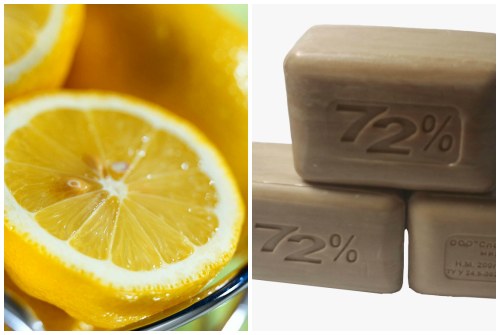 Donc, vous devez mélanger 20 g de soda, 2 cuillères à soupe. cuillères à soupe de vinaigre et 25 g de savon à lessive. Tout cela est dissous dans de l'eau chaude. Le mélange résultant est appliqué sur la surface, laissé pendant quelques heures et lavé à l'eau tiède.