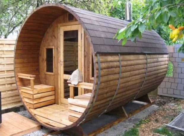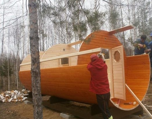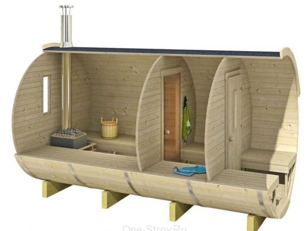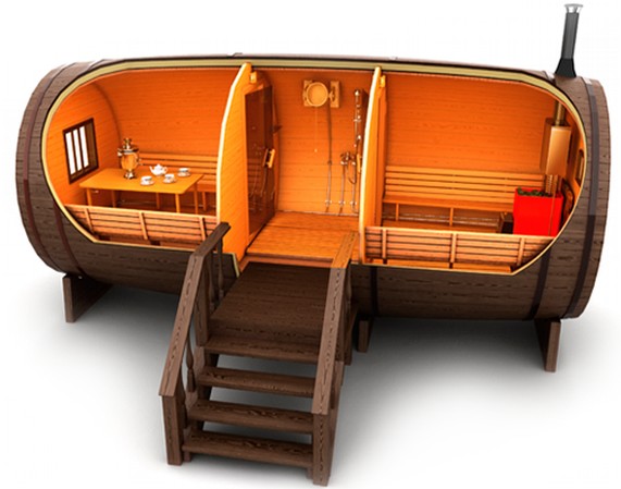 - bain de baril ovale (ellipsoïdal) ne prend pas beaucoup plus d'espace sur le site, mais en même temps l'espace utilisable interne augmente considérablement, tandis que le hammam se réchauffe presque aussi rapidement que dans un fût rond;