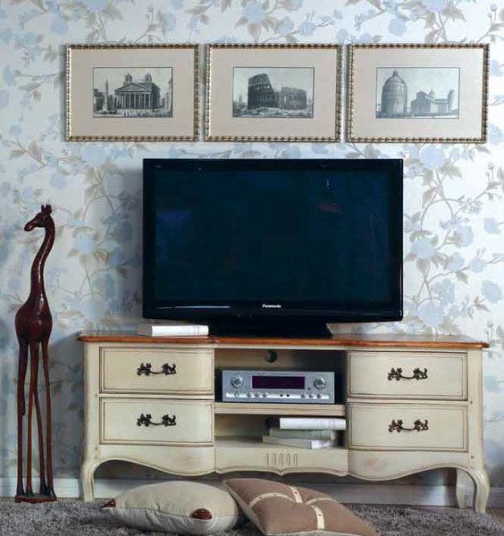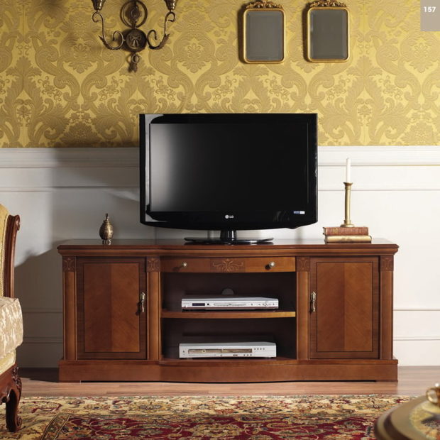 - commode - C'est un produit beaucoup plus fonctionnel. Un tel support tient non seulement le téléviseur sur lui-même, mais sert également de zone de stockage assez spacieuse. Si vous sélectionnez une armoire dans le hall, vous pouvez stocker des disques, des documents, des photos, toute la collection de gadgets à domicile et bien plus encore. La hauteur de la commode peut être quelconque: des meubles supérieurs sont installés, en règle générale, dans les chambrestandis que bas et large sont utilisés dans le salon. Sur la surface du meuble, en plus du téléviseur, vous pouvez disposer de nombreux accessoires mignons. Souvent, ces armoires font partie de l'ensemble ensemble de meubles, qui comprend également des étagères murales et des armoires montées au-dessus du téléviseur. L'avantage de ces ensembles par rapport aux murs traditionnels est la possibilité de fixer le niveau supérieur à n'importe quelle hauteur et de choisir un téléviseur avec n'importe quelle diagonale;
