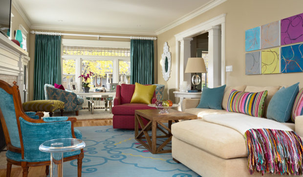 - une abondance de couleurs naturelles vivesmais en même temps, il est important de définir un schéma de couleurs pour vous-même afin que l'intérieur soit coloré, mais pas insipide;