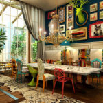 La devise du style est «combiner incongru». Les éléments traditionnels peuvent coexister tranquillement dans une pièce directions radicalement opposées. L'espace doit être surchargé de choses, comme si les souvenirs et les jolis bibelots au cœur ne sont pas censés être cachés - ils remplissent tous les murs, les étagères et les rebords de fenêtre. Les nuances importantes du style incluent également les nuances suivantes: