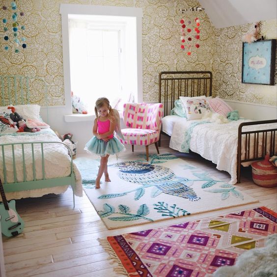 Pour le style des enfants, boho s'adapte parfaitement. La chambre lumineuse de conte de fées, comme celle d'un conte de fées, plaira à tout enfant. Il est préférable de concevoir la pièce dans des couleurs vives et de transmettre la panachure à l'aide de textiles. Tapis lumineux, couvertures à rabat, jouets pour enfants et artisanat - tout cela apportera un style Boho à la pièce. Un des murs peut même être peint peinture ardoisepour que les enfants montrent leur créativité.