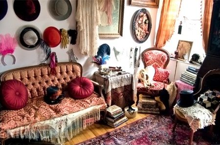 Le style bohème date du XVIIIe siècle. C'est alors en France qu'un groupe de jeunes artistes défie la société. Ils ont promu l'art pour le bien de l'art, et l'artiste lui-même, dans leur compréhension, aurait dû chercher pour qu'il soit considéré. Il est facile de deviner que le style des vêtements et la façon d'équiper leur propre maison étaient spéciaux, semblables à la gitane. Les Français appelaient les gitans Bohemies, Bohème, et le nouveau style, par analogie, était appelé bohème, ou boho. Les gitans utilisaient des éléments de différents pays dans les vêtements et les bijoux: jupes indiennes lumineuses, foulards avec broderie et franges de Chine, manteaux de fourrure européens, et tout cela sous la sauce de nombreux accessoires. À peu près le même, assemblé à partir de différents styles et directions, est devenu le boho intérieur.