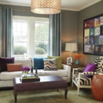Même le canapé moderne le plus ordinaire peut être transformé si vous le décorez avec un couvre-lit à thème ou jetez quelques oreillers variés. N'oubliez pas que les rideaux doivent être lumineux.