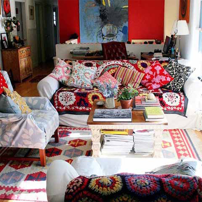 - vous pouvez oublier la règle des trois couleurs - c'est trop ennuyeux pour un boho hurlant, alors n'hésitez pas à mélanger différentes nuances, mais tout vider dans une seule pièce ne vaut pas la peine. Il est préférable de définir plusieurs teintes et de travailler avec elles, mais pas méticuleusement, mais en laissant libre cours à l'imagination et à la possibilité de faire un pas de côté;