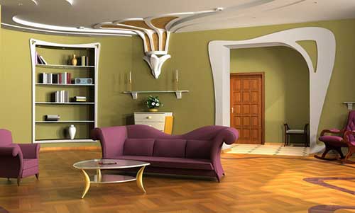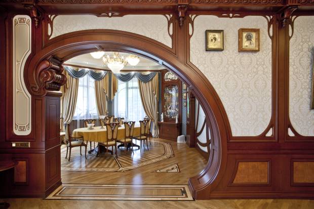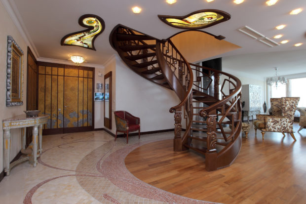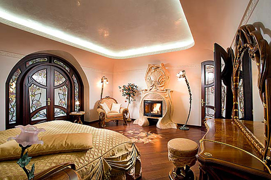 La principale caractéristique du style Art Nouveau est rejet des lignes droites strictes et symétrie. Les lignes courbes lisses sont préférées.Une ouverture de fenêtre, par exemple, est mieux conçue comme arches. Il en va de même pour la porte. Laissez l'escalier se plier en douceur et le plafond sera à plusieurs niveaux. Les lignes droites peuvent l'être, mais essayez d'utiliser des formes lisses dans la mesure du possible. En l'honneur de l'asymétrie, des matériaux naturels, des nuances calmes.