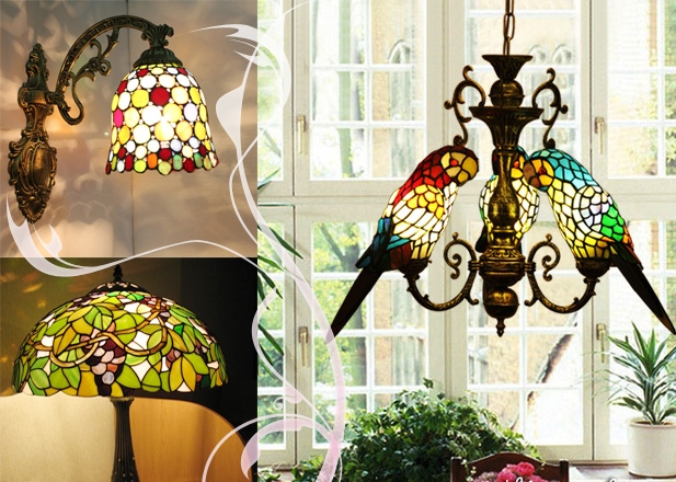 En plus de l'éclairage central, des appliques murales et des lampes de table sont utilisées. Les jambes lampadaires en bois ou en métal, ils diffèrent par leurs formes courbes. Abat-jour en verre coloré, tissu, porcelaine, utilisez des éléments de forgeage.