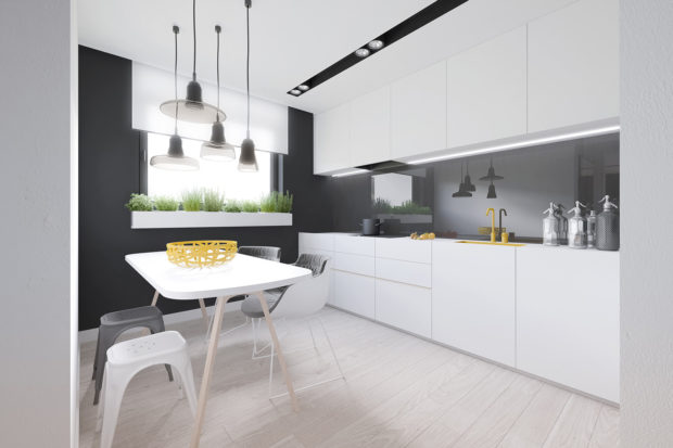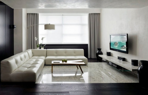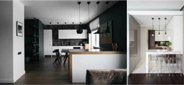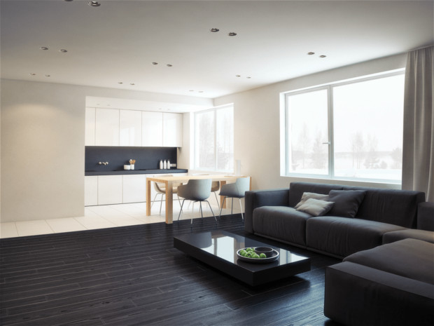 Gamma noir et blanc - Une autre solution populaire pour le minimalisme. Il s'agit d'un jeu de contrastes, la combinaison parfaite qui vous permet de transmettre l'esprit et l'humeur du style. Souvent, une couleur intermédiaire rejoint ce duo - gris. Souvent gris au lieu du blanc, il devient la teinte principale. Combinaison blanc avec gris également très fréquent. Sur un tel fond monochrome, les détails des couleurs sont superbes. Peut utiliser bleu, rouge, vert, jaune et toutes autres nuancesmais rappelez-vous la règle des trois couleurs et de la modération.