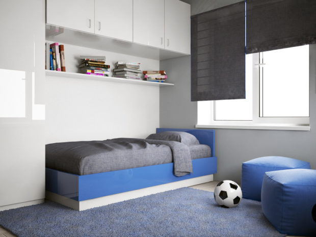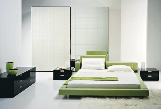 - le lit choisissez large, simple. Les lits bas sont également populaires. Le bord inférieur du lit peut être mis en évidence pour rendre la pièce plus aérée;