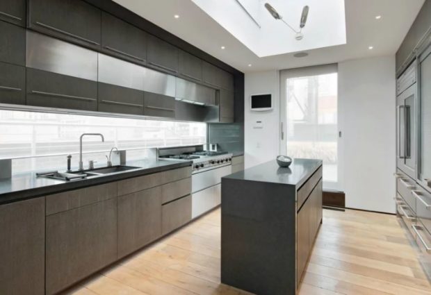 - pour la décoration murale, choisissez la peinture, le bois, la brique décorative, Zones humides peut être décoré de carreaux, de pierre artificielle ou de verre, l'acier chromé est autorisé. Pour la finition du sol, un carrelage en stratifié ou en porcelaine convient, des carreaux sont utilisés;