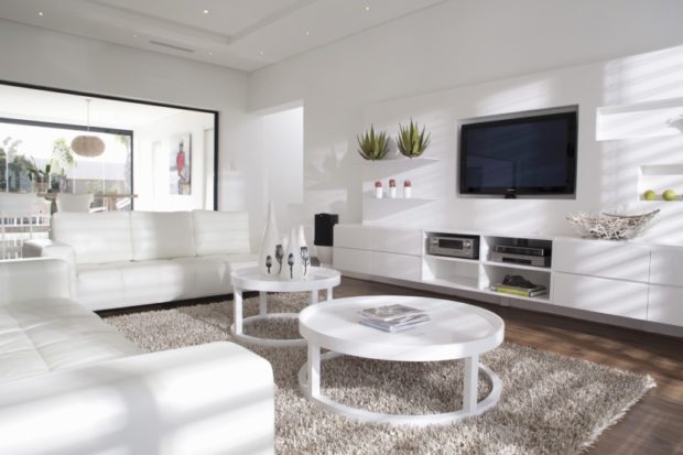 La chambre et le salon ne peuvent se passer d'un tapis moelleux et moelleux. Le blanc sera parfait, mais d'autres teintes sont autorisées.