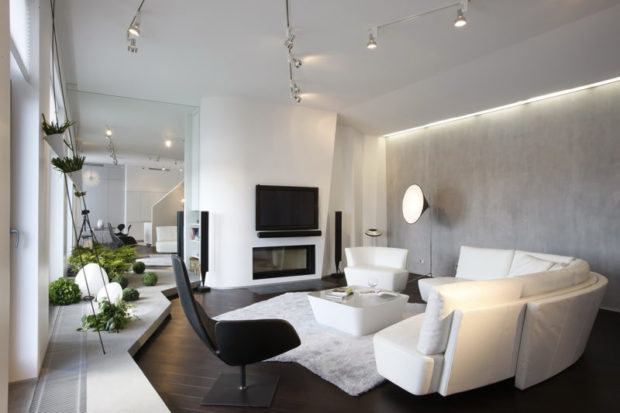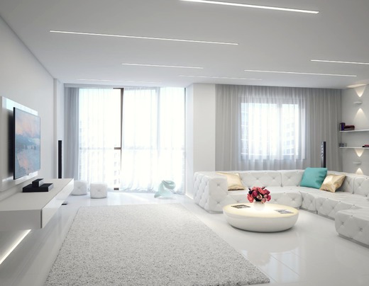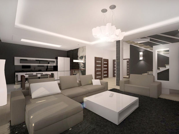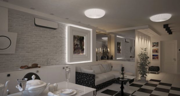 Avec l'aide de la lumière, la pièce peut être zonée, sans cloisons mettant en évidence certaines parties de la pièce. Il est nécessaire de créer différents scénarios d'éclairage dans une pièce, pour transmettre une certaine ambiance.Vous pouvez allumer un lustre ou un projecteur ordinaire, et ce sera l'éclairage de tous les jours, ou vous pouvez peindre une pièce en bleu ou rouge en utilisant un éclairage spécial, et obtenir un éclairage festif.