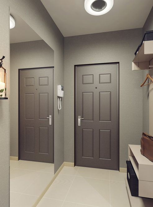 Le couloir est décoré dans des couleurs vives et utilise un minimum de meubles. Une petite armoire suffit étagères à chaussuress'il n'a pas de compartiment à chaussures. Les surfaces réfléchissantes sont respectées, de sorte que l'armoire peut être choisie avec une porte miroir. Une alternative est d'attacher le soi un miroir sans cadre sur l'un des murs, et prenez le meuble avec une surface légèrement brillante. Le hall d'entrée doit être clair, mais ils ne se concentrent pas sur les lampes. Ils sont ici uniquement dans le but de remplir leur fonction directe, afin qu'ils puissent être aussi simples que possible.
