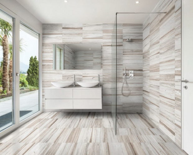 - en plus du chrome et du verre, ils utilisent du calcaire blanc et du marbre, ainsi que des carreaux de brique.