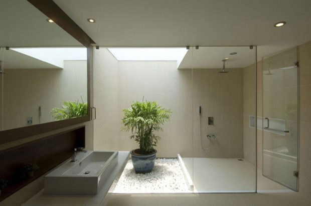 - une abondance de verre. Les portes cabine de douche entièrement en verre transparent. Un espace magnifique et visuellement plus libre reste;