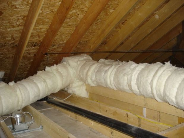 Les tuyaux sont fixés par incréments de 1 à 2 m, si vous augmentez la distance, vous risquez de tomber et de perturber le système de ventilation. Gardez à l'esprit qu'avec une différence de température importante, de la condensation peut se former à l'intérieur du conduit et à l'extérieur. Par exemple, en hiver, l'air chauffé est évacué par le conduit de ventilation et s'il passe à travers un grenier non isolé, de la condensation apparaîtra sur les murs, ce qui, avec une influence constante, réduit la durabilité du système. La solution consiste à isoler vous-même les tuyaux de ventilation ou à acheter des produits déjà isolés.