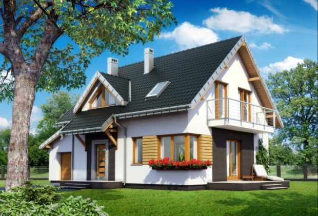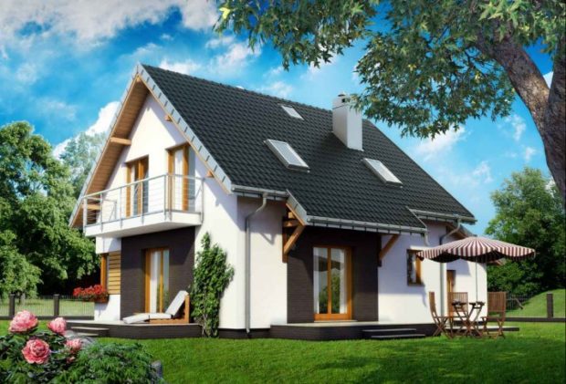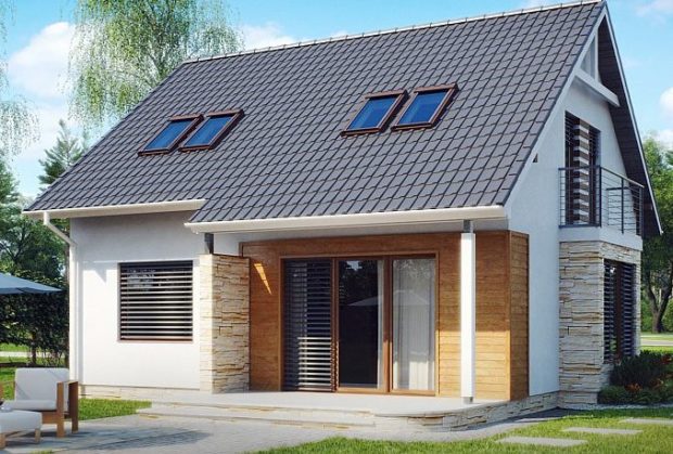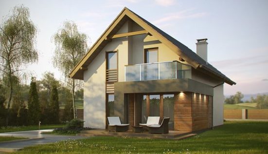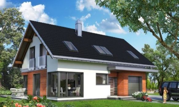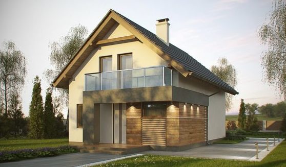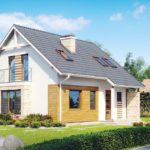 C'est la maison la plus simple, sans fioritures architecturales, avec le toit à pignon habituel. Il est super pour petites et étroites zones, et grâce à la décoration correcte de la façade, la maison aura l'air rentable. Le projet est une planification incroyablement réfléchie: ici chacun 105 m2 utilisé au maximum. Au rez-de-chaussée ils proposent de placer une cuisine et un séjour avec cheminée. Ces pièces sont en fait divisées, une salle à manger séparée n'est pas fournie, mais si vous combinez les pièces, la table à manger peut être retirée de la cuisine - tout dépend de vos souhaits. Le salon a accès à la terrasse. Au rez-de-chaussée, vous trouverez une chaufferie, une salle de bain et un petit salon (bureau, chambre d'amis, chambre d'enfants).
