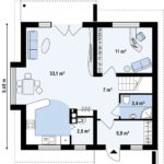 Excellente option pour une petite famille. Le projet comprend la construction d'une maison dans laquelle tout le nécessaire est placé sur surface totale 70 m2. Ce sont deux chambres compactes avec de grandes fenêtres, une salle de bain et un hall d'entrée. Le centre de la maison est un salon combiné avec une cuisine, mais si vous le souhaitez, vous pouvez construire une cloison et séparer la cuisine en une pièce séparée. Le projet prévoit l'organisation cheminée et disponibilité chaufferie. Depuis le salon, vous pouvez accéder à la terrasse, et si vous prenez en compte la proximité de la cuisine, vous pourrez vous régaler de délicieux plats chauds à l'air frais.