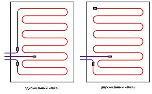 - monocœur C'est moins cher, mais plus difficile à installer, car les deux extrémités doivent être connectées à un thermostat. Un autre inconvénient est la formation d'un fort champ électromagnétique. En règle générale, un tel câble est utilisé dans garages, installations de stockage et installations similaires;