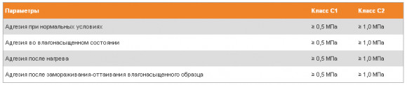 - C2 - composition avec adhérence supérieure à 1 MPa.