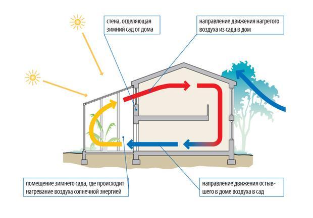 - chauffage par air vous permet d'utiliser l'air chaud des logements. Il a traversé les fenêtres et les ventilateurs se sont distillés dans le jardin. Cela s'avère bon marché, mais l'ensemble du système prend beaucoup de place et l'apparence du jardin sera gâchée par le système de conduits.