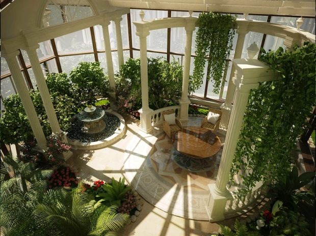 - jardin d'hiver résidentiel entièrement ou partiellement vitré, utilisé comme une partie à part entière de l'espace de vie.Dans une telle pièce, en plus des plantes, il y a un salon, une salle à manger ou tout simplement une aire de loisirs. Des conditions sont créées qui seront confortables pour les plantes et les humains;