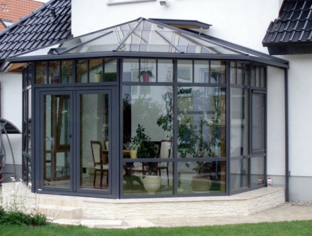 - fenêtres à double vitrage Ils coûtent cher et pèsent décemment, mais ils stockent bien la chaleur à l'intérieur du jardin et, par transmission lumineuse, ils se tiennent au même endroit avec du verre. Si vous choisissez non pas des verres ordinaires, mais des verres économes en énergie, vous pourrez économiser décemment sur la chaleur, et c'est pourquoi aujourd'hui fenêtres à double vitrage sont de plus en plus utilisés dans l'aménagement de jardins d'hiver;